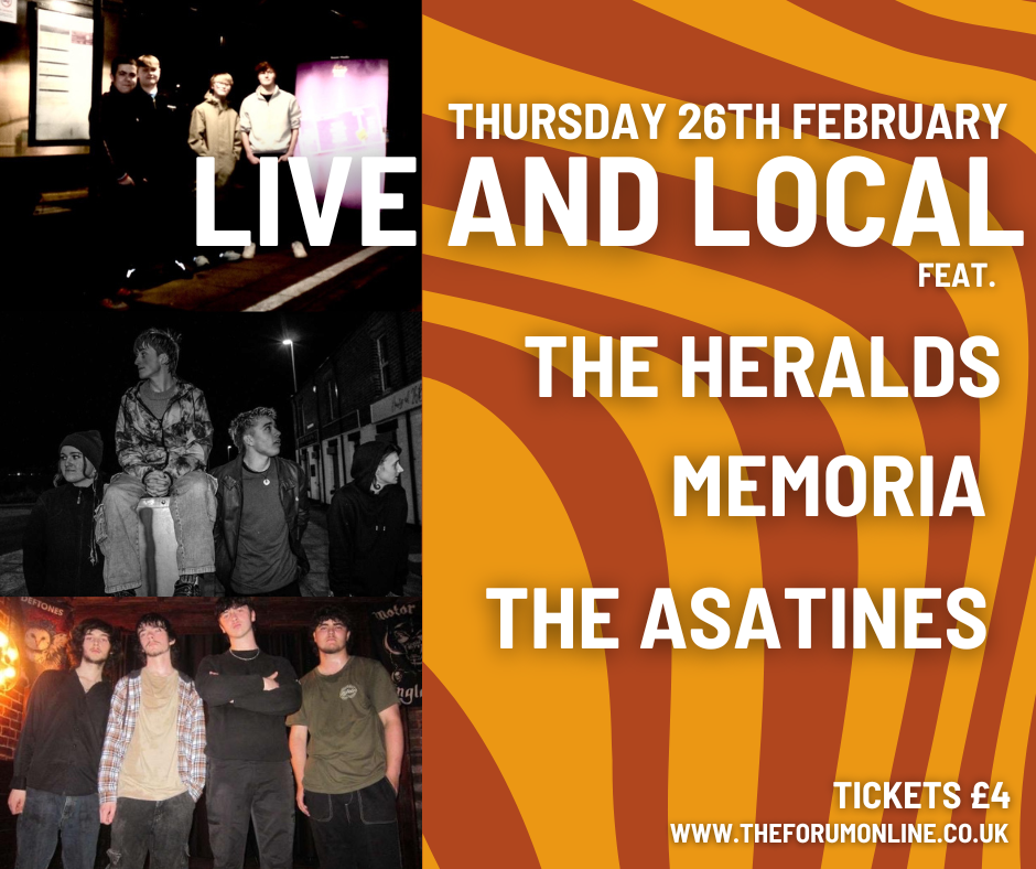 The Asatines: 4 piece Garage Rock band from the North East. Their raw sound and grungy guitar sounds catch the attention of the audience immediately, the band are made up of four members and are guaranteed to bring the energy to The Forum this February.